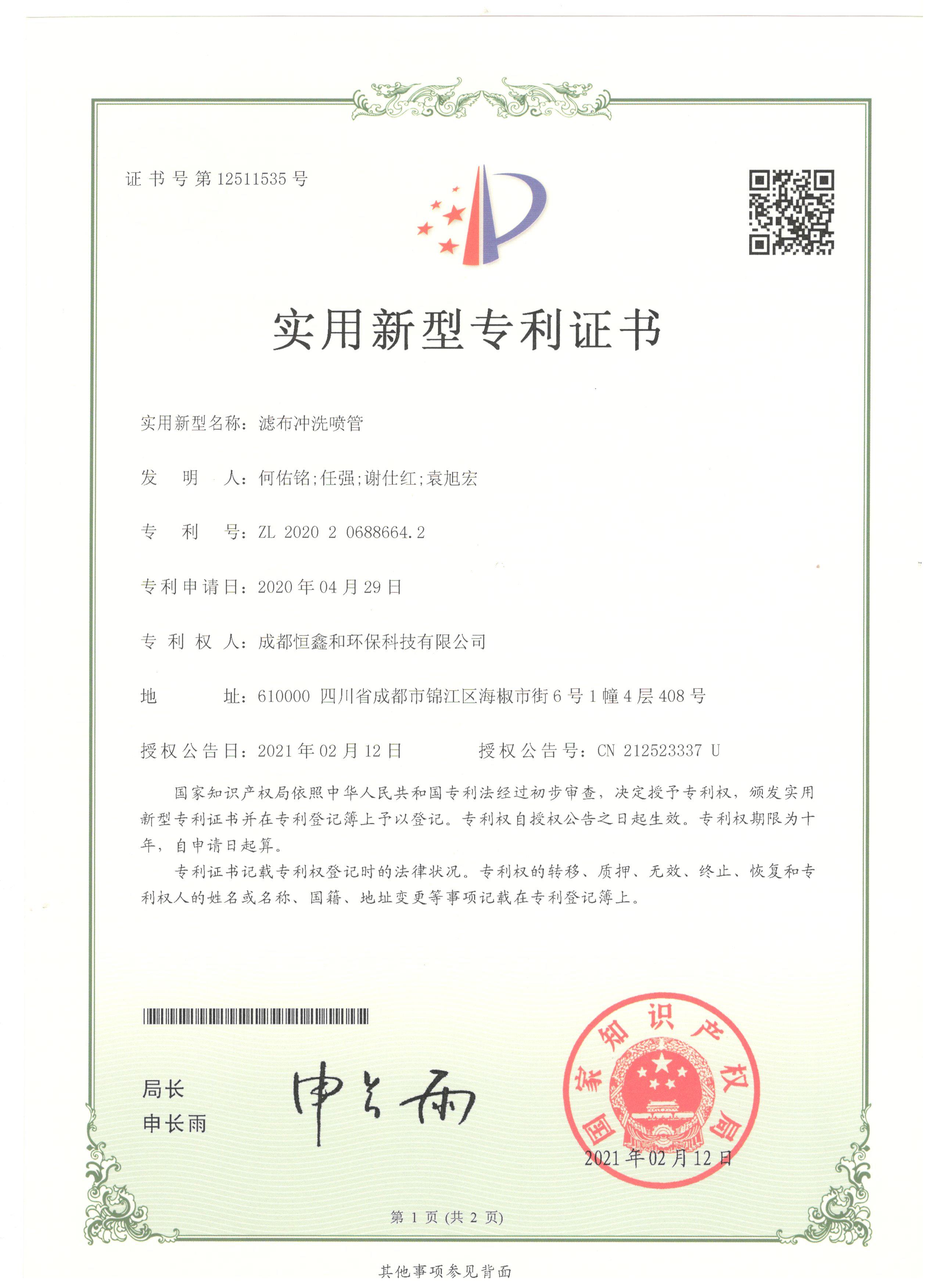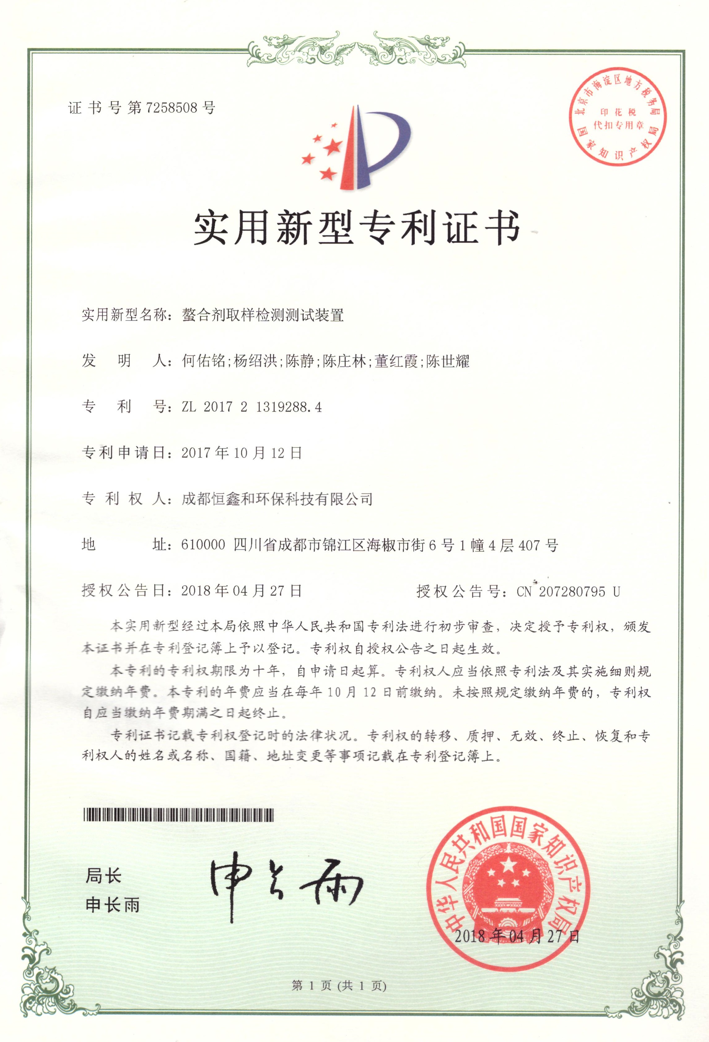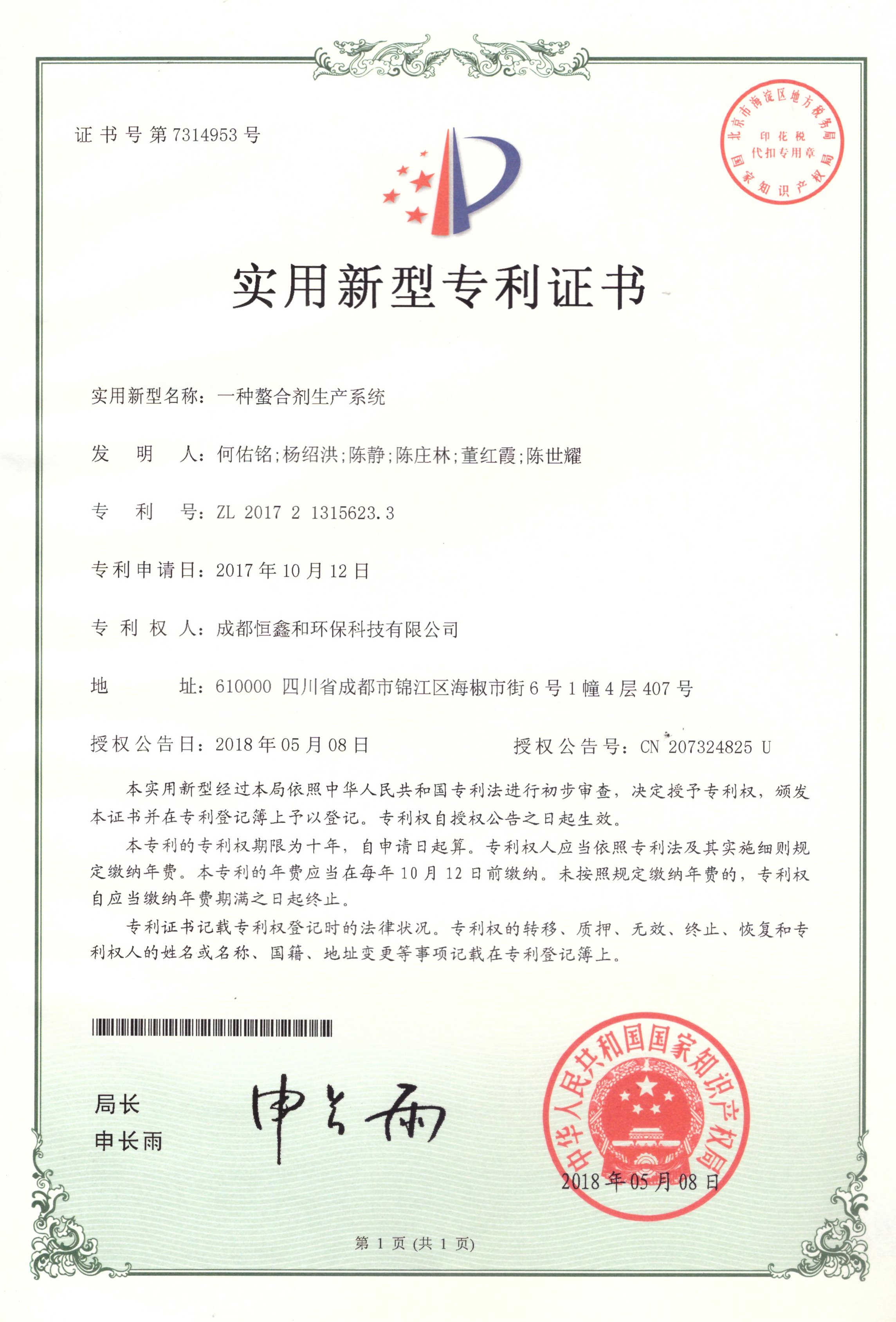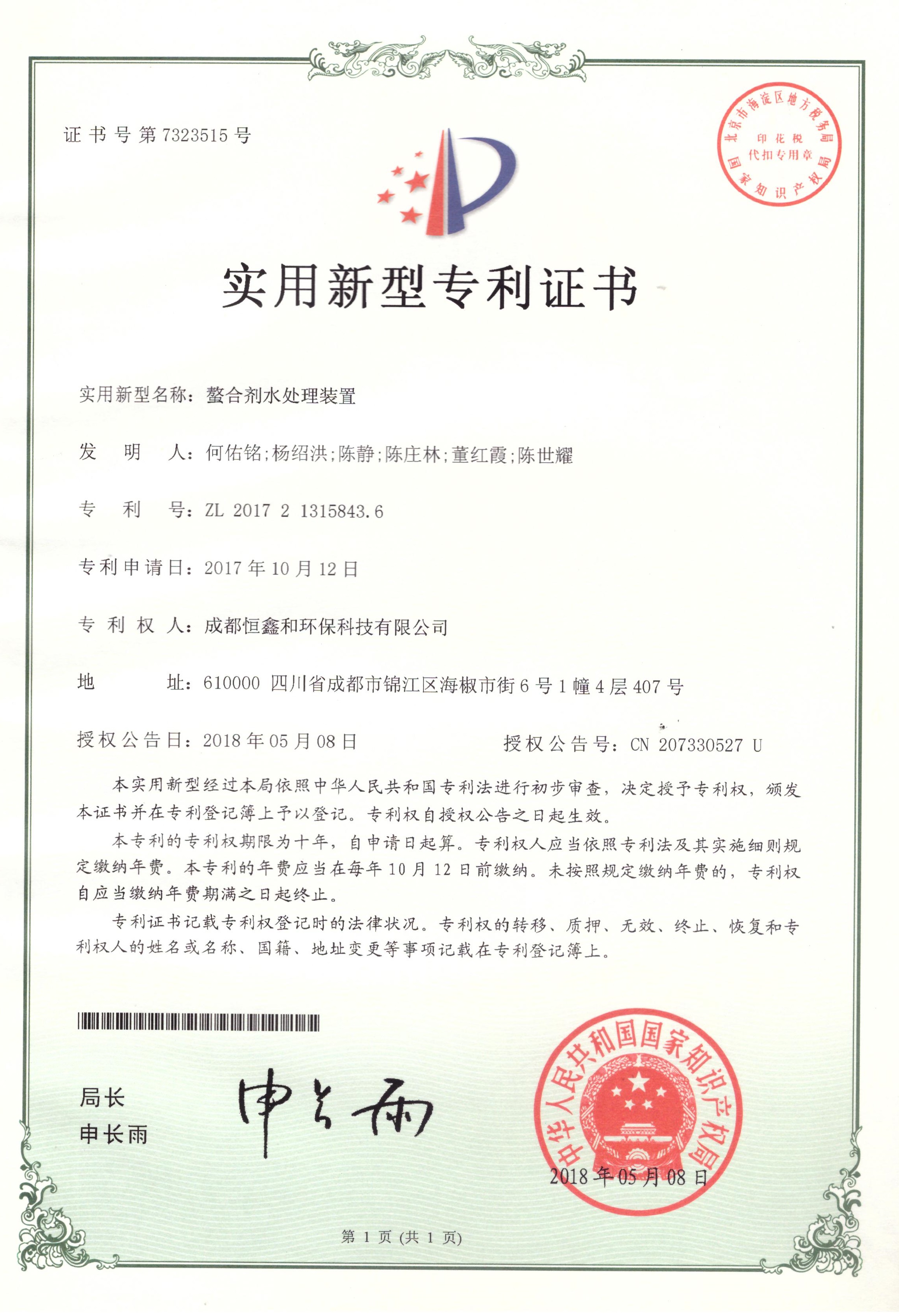 授權(quán)證書(分步式飛灰固化處理設(shè)備)